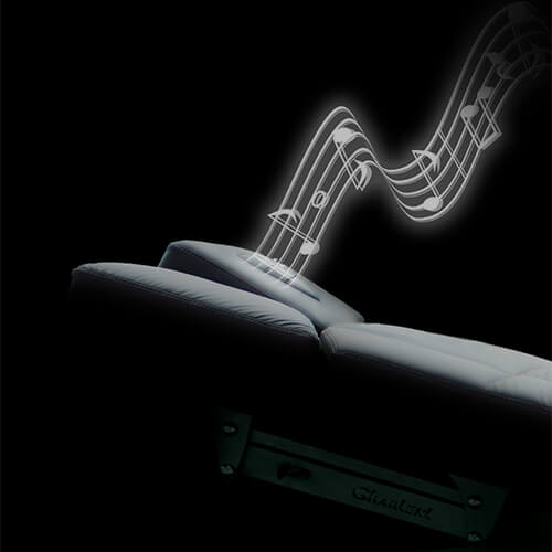 Die seitlich eingebauten Lautsprecher garantieren ein angenehm entspannendes Klangerlebnis bei größtem Komfort. Das Gerät selbst befindet sich außerhalb des Polsters – Für einfache Bedienung.